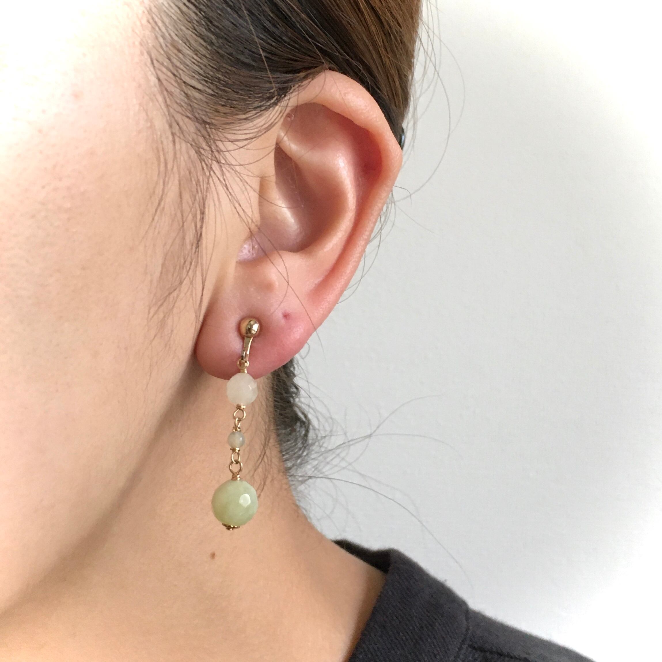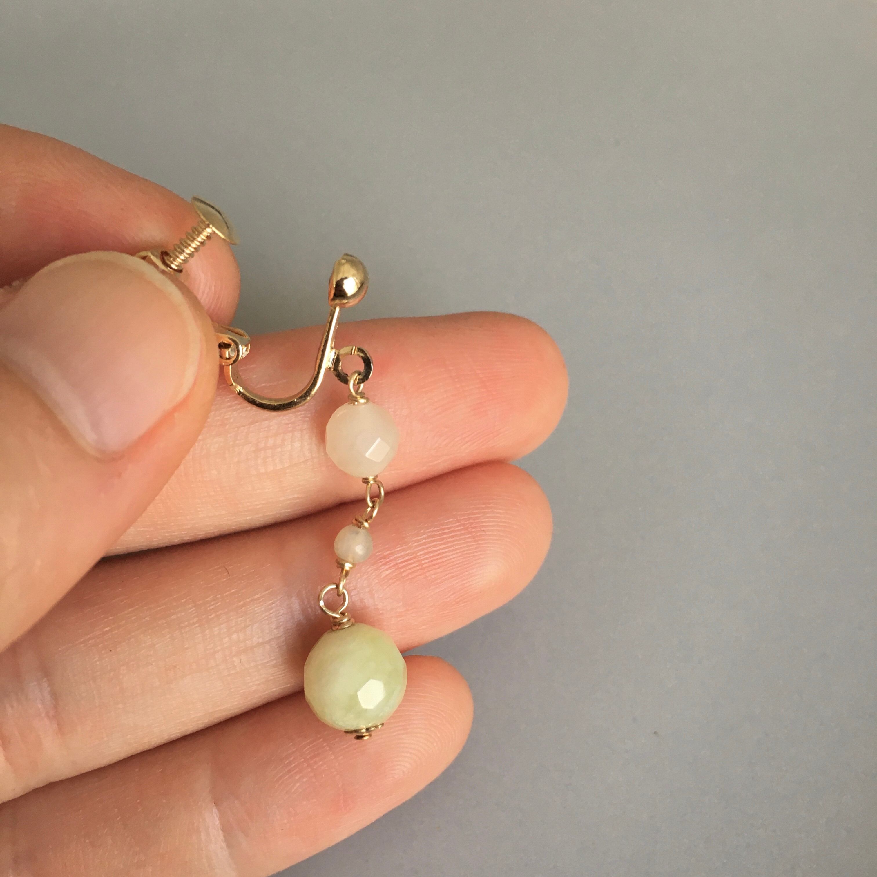 14Kgf(イヤリング金具のみメッキ)、ニュージェイド、ハニーストーン